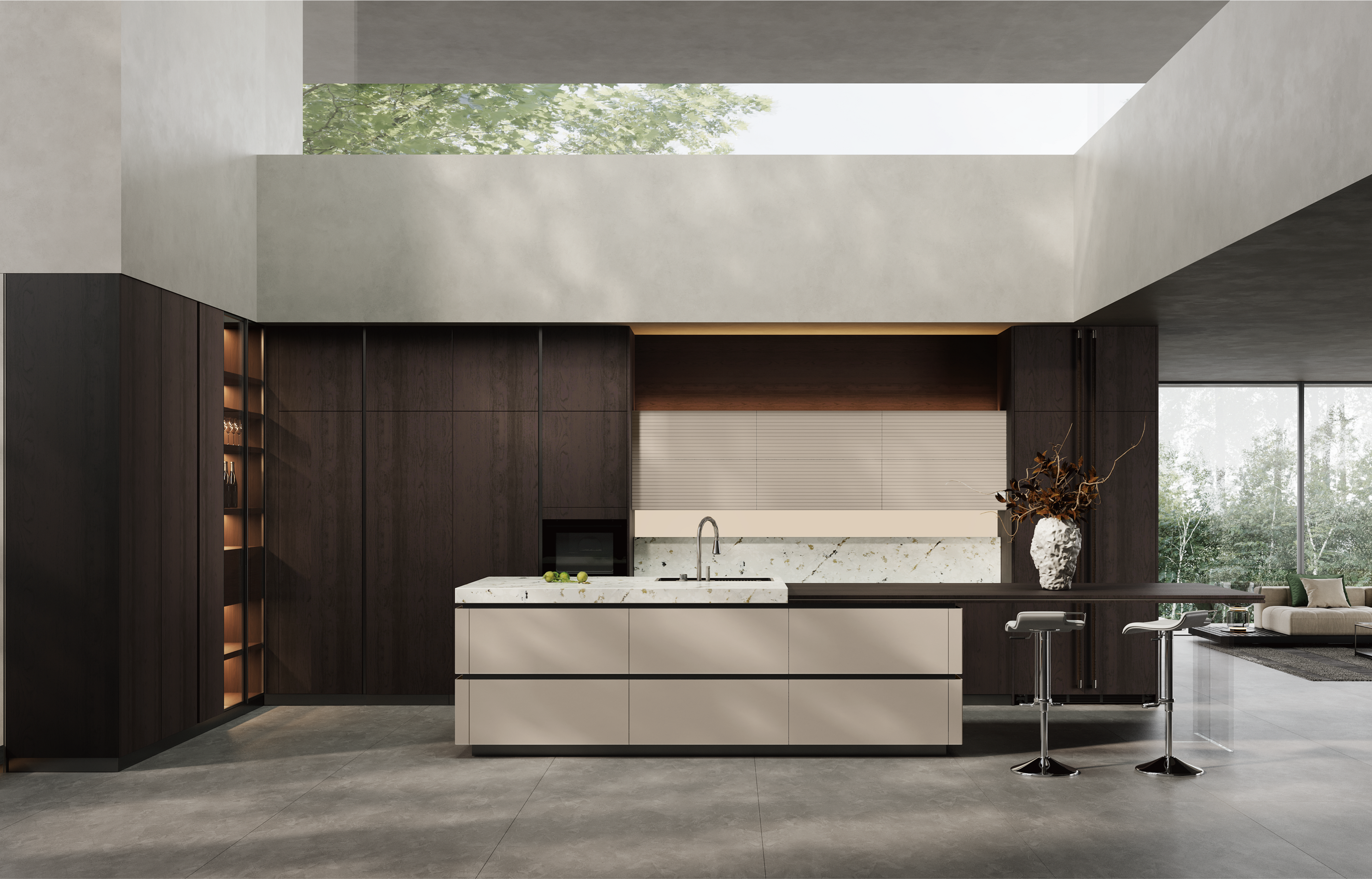 通过AG旗舰厅厨柜量体裁柜,定制出适合主厨下厨的烹饪区和洗涤区的舒适高度。